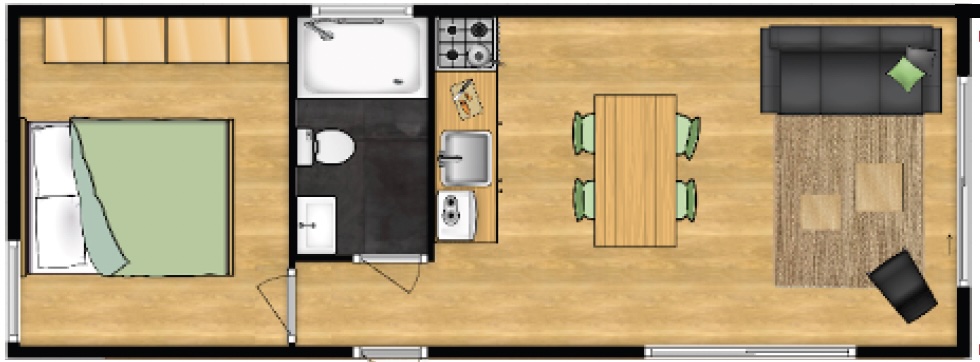 Het instapklare chalet (33m2) staat op een ruim perceel van 150 m2.