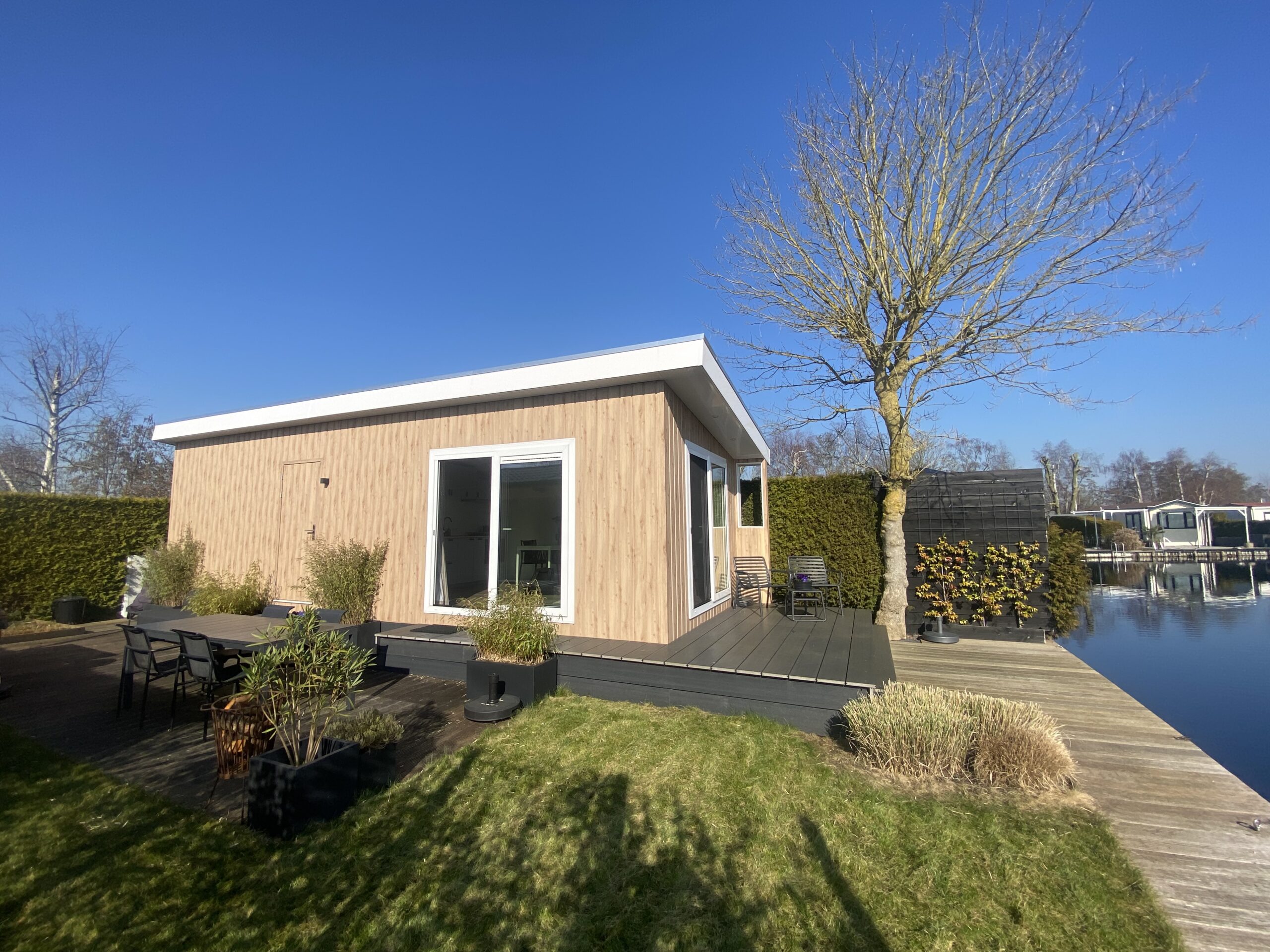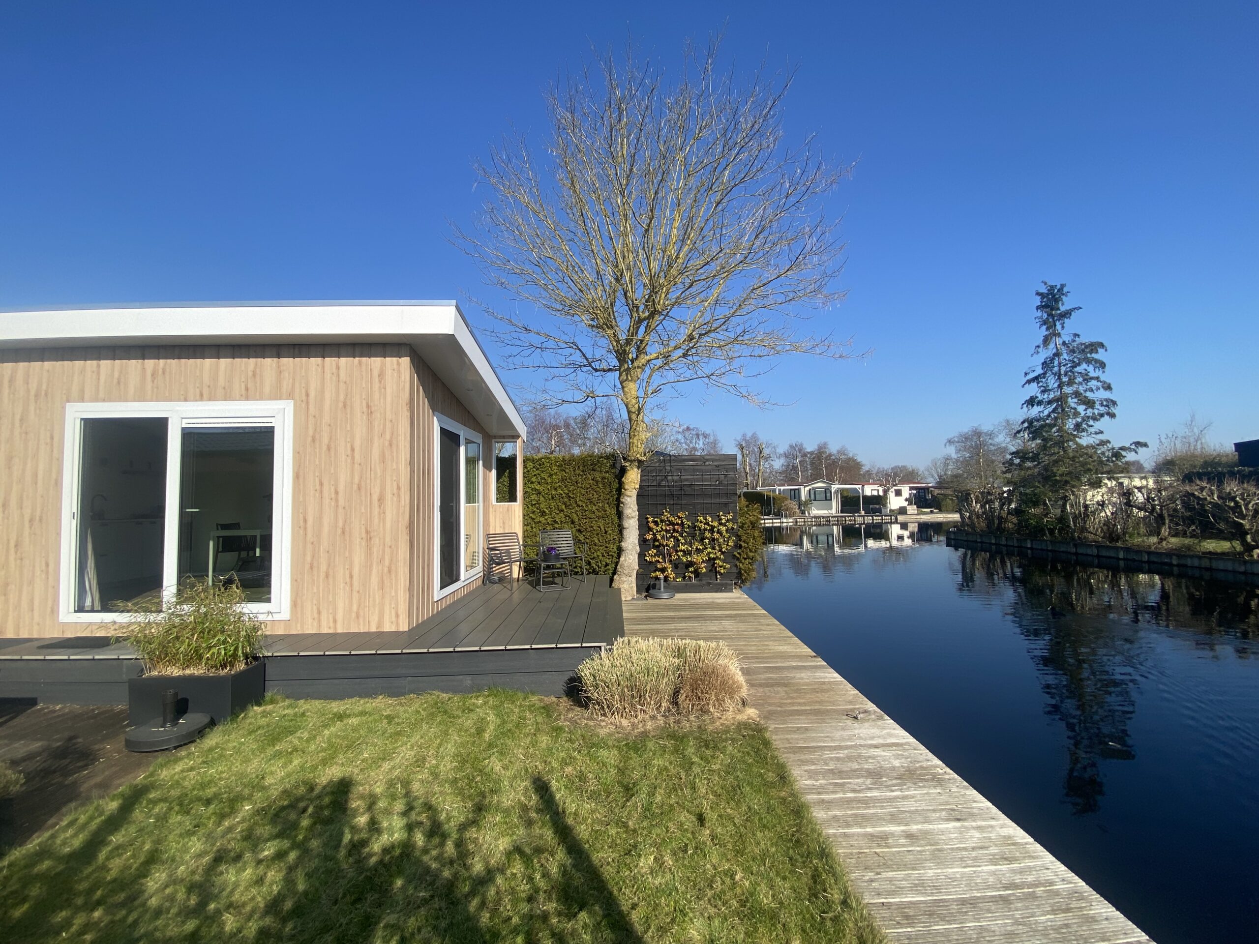Op een unieke locatie aan het water wordt dit nieuwe chalet te koop aangeboden.