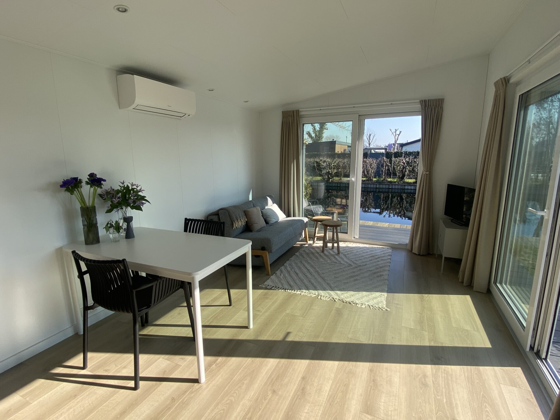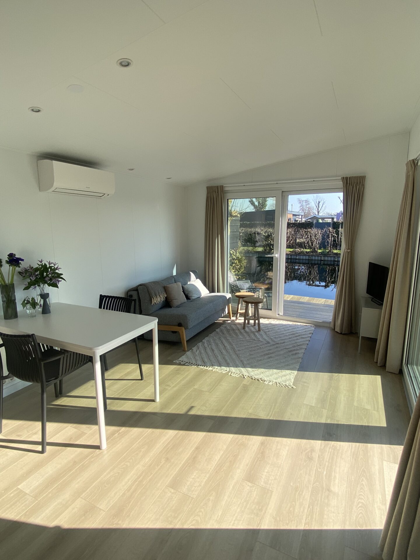 In de woonkamer staat een Innovation Cube slaapbank die extra slaapplaats
